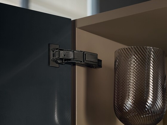 Nosso amplo programa de dobradiças em preto-ônix oferece a solução ideal para praticamente toda situação de recobrimento.