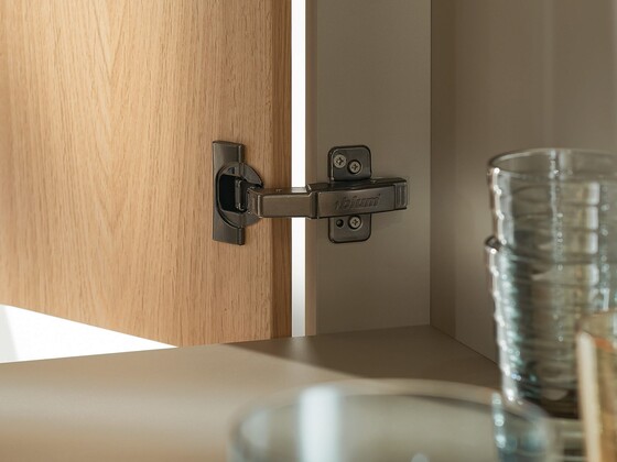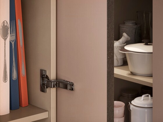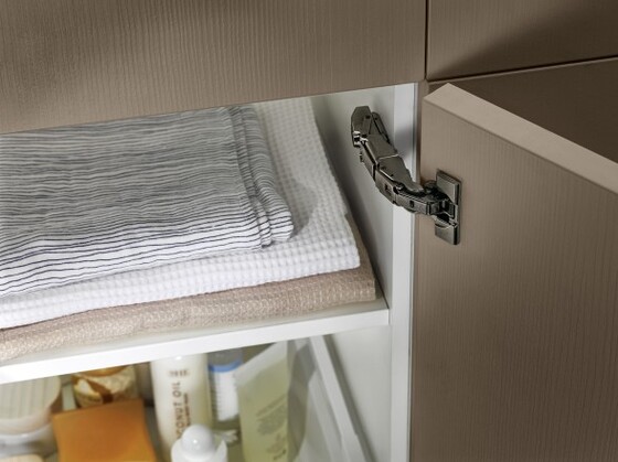 A solução perfeita para cada aplicação: dobradiças Blum são adequadas para os mais diversos ambientes, todos os materiais usuais e suas diferentes espessuras. Cobrimos praticamente todas as exigências com o nosso programa de dobradiças. Desta forma, você tem mais liberdade na composição de móveis e pode se concentrar totalmente em atender às necessidades de seus clientes.