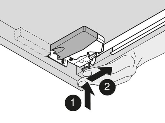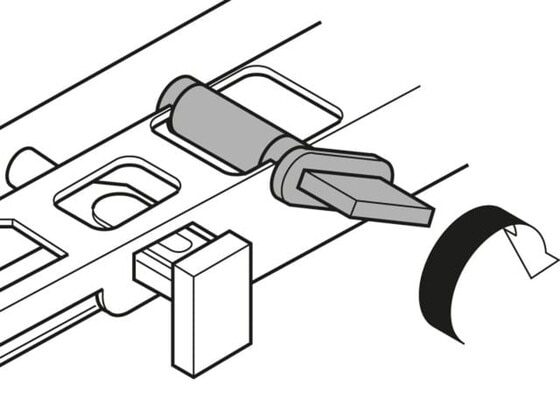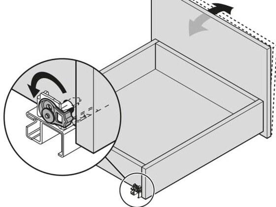 É só colocar a gaveta na corrediça, puxar para a frente e pronto! A segurança antidesenganche evita uma liberação indesejada da corrediça. O ajuste fino é conseguido num instante: com o ajuste de altura sem uso de ferramentas, você pode compensar até 2,5 mm. Graças ao ajuste de inclinação integrado, pode-se alinhar também a frente sem esforço.
