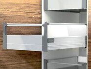 Skapa välkommen ordning i alla dina lådor och utdrag. Oavsett om det handlar om bestick, flaskor eller grytor - samtliga förvaras säkert och lättåtkomligt. Välj ORGA-LINE-inredning till din utställning efter behov och typ av användning. Påbyggnadssidan BOXSIDE ger extra stöd för innehållet i de djupa skåputdragen.