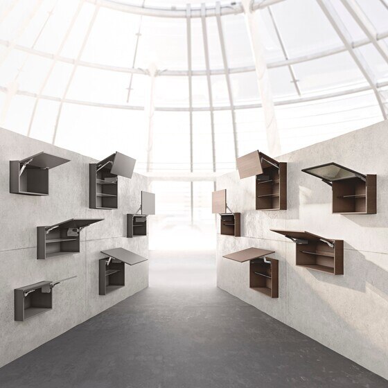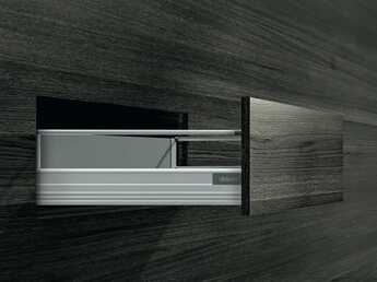 Eftersom Blums standardbeslag monteras i SPACE TWIN kan man realisera de smala skåpen med alla våra programlinjer. Välj mellan våra Boxsystem LEGRABOX och TANDEMBOX eller våra skensystem MOVENTO.