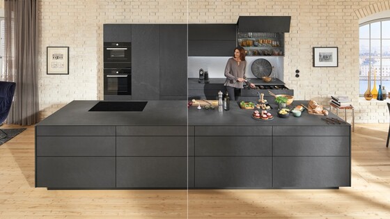 Look behind the kitchen fronts and take the opportunity to open and close each drawer, wall cabinet or door. Every cabinet is filled with items to give you an idea of what the application would look like in your home. You can use display cabinets to try out which fittings solutions best meet your needs.