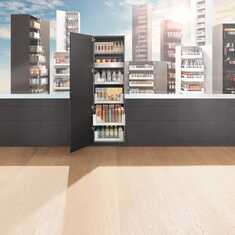 Especialmente frente al armario de fregadero a menudo se tienen las manos ocupadas, mojadas o sucias. En este caso, el sistema eléctrico de apertura asistida SERVO-DRIVE resulta particularmente ventajoso en los armarios de fregadero. Basta tocar ligeramente con la rodilla, la cadera o el pie para que el módulo extraíble se abra. SERVO-DRIVE también está disponible como solución individual (SERVO-DRIVE uno).