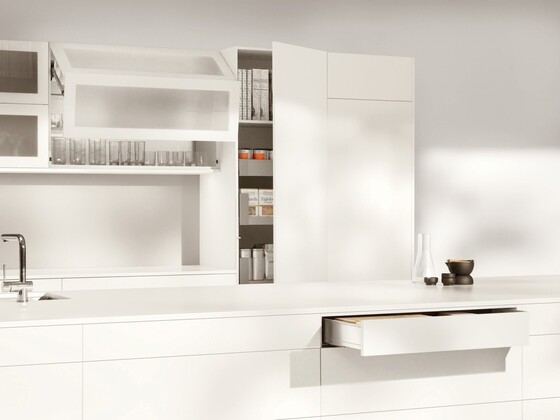 Las tecnologías de movimiento de Blum facilitan el diseño de compases abatibles, puertas y módulos extraíbles sin tiradores. Hay una solución para cada área del hogar: completamente eléctrica, solo mecánica o una combinación de ambas.