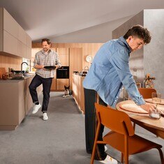 MOVENTO es estable y cuenta con capacidad de carga. Gracias a los buenos valores de caída, el sistema de guías también resulta adecuado para aplicaciones a ras del suelo. Esto hace que la extracción total con las clases de carga de 40 kg y 70 kg sea la primera opción. Para todos los sectores de la casa, incluso al utilizar módulos extraíbles anchos, altos o profundos.