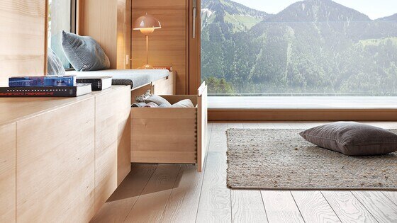 El sistema de guías oculto MOVENTO es la solución sofisticada para sus ideas de madera. El deslizamiento ultraligero sincronizado garantiza una gran sensación de suavidad. Gracias a las posibilidades de ajuste en 4 dimensiones, obtendrá un juego de puerta preciso. Además, la extracción total destaca por su gran estabilidad y capacidad de carga. Con sus 4 tecnologías de movimiento, MOVENTO se puede utilizar para la apertura y el cierre suave y silencioso.