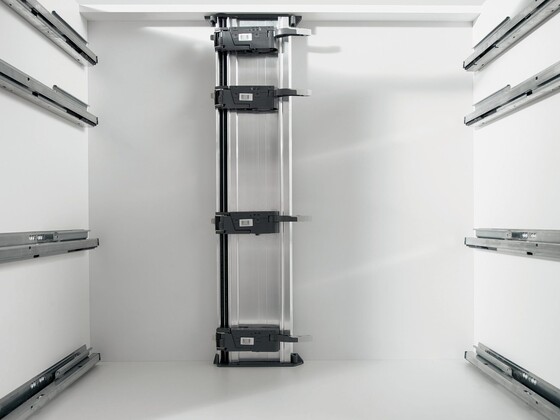 No modifications need be made to pull-out systems to equip them with SERVO-DRIVE. The feather-light glide of runners and soft and effortless closing with BLUMOTION are still guaranteed.
