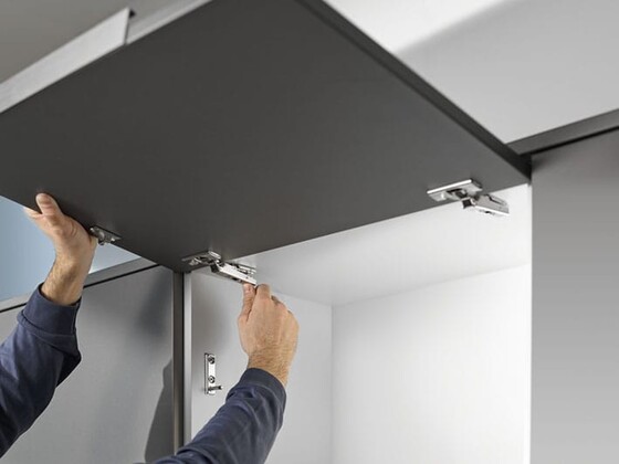 AVENTOS HK-XS parçaları neredeyse aletsiz monte edilir. Güç ünitesi kapağın ağırlığına ve büyüklüğüne göre tam ayarlanır, böylece küçük kalkar kapak her zaman sorunsuz açılır, kapanır ve durur. CLIP top BLUMOTION menteşe ile kombine edildiğinde küçük kalkar kapak yumuşak ve sessiz kapanır.