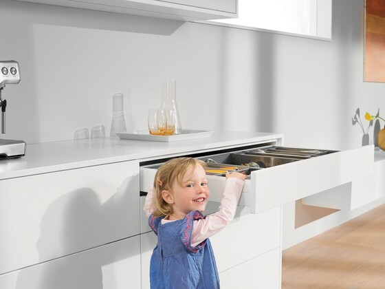 Our tried and tested TANDEMBOX cabinet profile delivers top quality motion and enhanced user convenience. The secret lies in its low-friction cylindrical nylon rollers which guarantee a feather-light glide and dynamic carrying capacities of 30 and 65 kg. And thanks to soft-close BLUMOTION, drawers and pull-outs always close softly and effortlessly - a furniture lifetime.