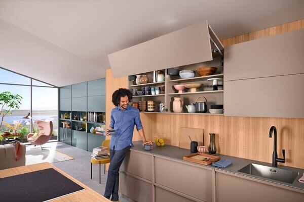 В іміджевому трейлері AVENTOS top показано єдиний дизайн підіймальних механізмів, компактний асортимент та простий монтаж. Усі підіймачі можуть поєднуватися між собою, використовуватися для різних розмірів корпусів та з розмаїтими матеріалами фасадів.