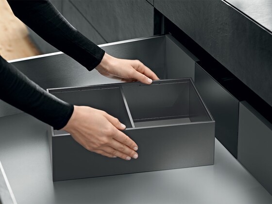 AMBIA-LINE has been specifically designed for LEGRABOX. Its slim frames can be used in many ways so that items are always organized and easy to find.