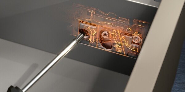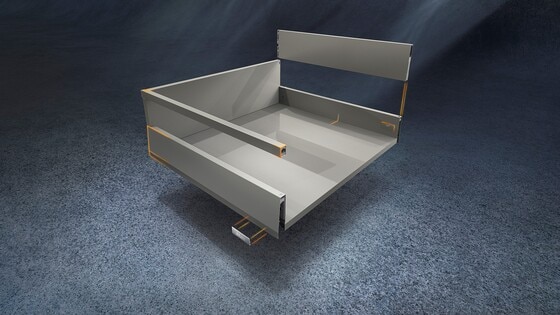The three components – cabinet profile, drawer side and front – allow for variety with the same manufacturing process. MERIVOBOX is the true platform for your broad range.