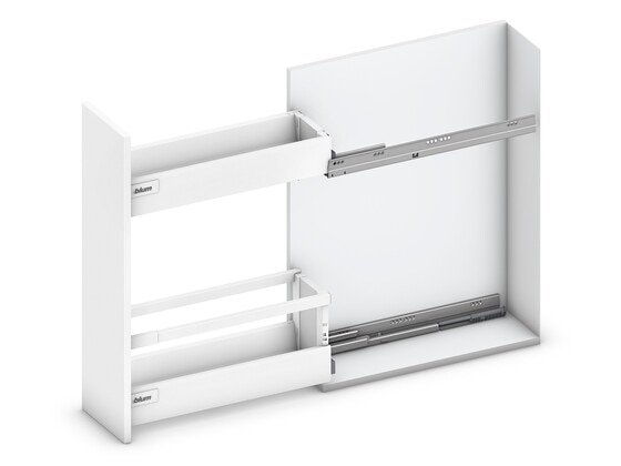 MERIVOBOX also gives you a choice of different drawer side accessories for narrow cabinets.
