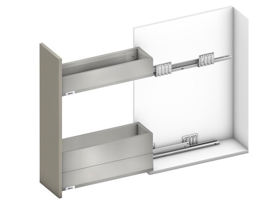 MOVENTO drawer runners let you create a SPACE TWIN solution using wood drawer boxes.