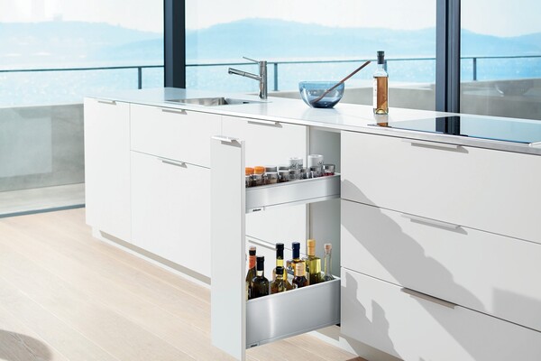 The linear and slim design of LEGRABOX can be used to its full advantage in narrow cabinet solutions.