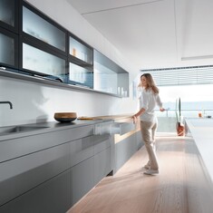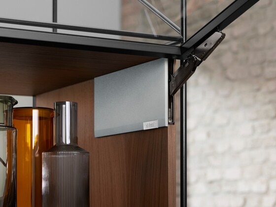 The BLUMOTION soft-close mechanism ensures that the integrated lift system always closes softly and effortlessly. For handle-less applications, our narrowest lift system can also be implemented with TIP-ON motion technology.