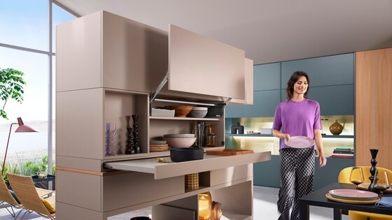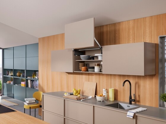 Looking for soft and effortless closing? The integrated BLUMOTION soft-close mechanism is the answer. You can also combine the lift system with the SERVO-DRIVE electrical motion support system – for the entire kitchen or individual cabinets.