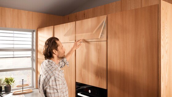 Functional: Lift systems in wall cabinets can be easily opened with a light touch and closed again with the press of a button.