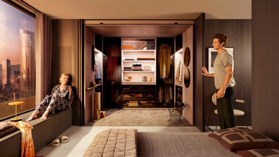 Blum's new product category, pocket systems, opens up completely new opportunities for creating multifunctional space. REVEGO, the unique pocket door system with fully integrated technology, allows you to open up complete living areas when you need them and conceal them again when they are not in use. No matter whether single or double door application, the full overlay fronts disappear into a dedicated narrow cabinet, the pocket.
