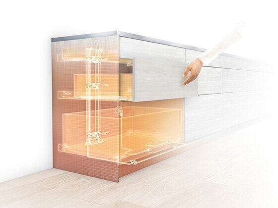 TANDEM is available as a full or partial extension. Full extension gives you easy access to the very back of drawers so everything is within reach.