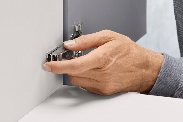 Cơ cấu CLIP đã qua kiểm tra và thử nghiệm của Blum giúp lắp ráp cửa vào tủ mà không cần sử dụng dụng cụ một cách nhanh chóng và dễ dàng.